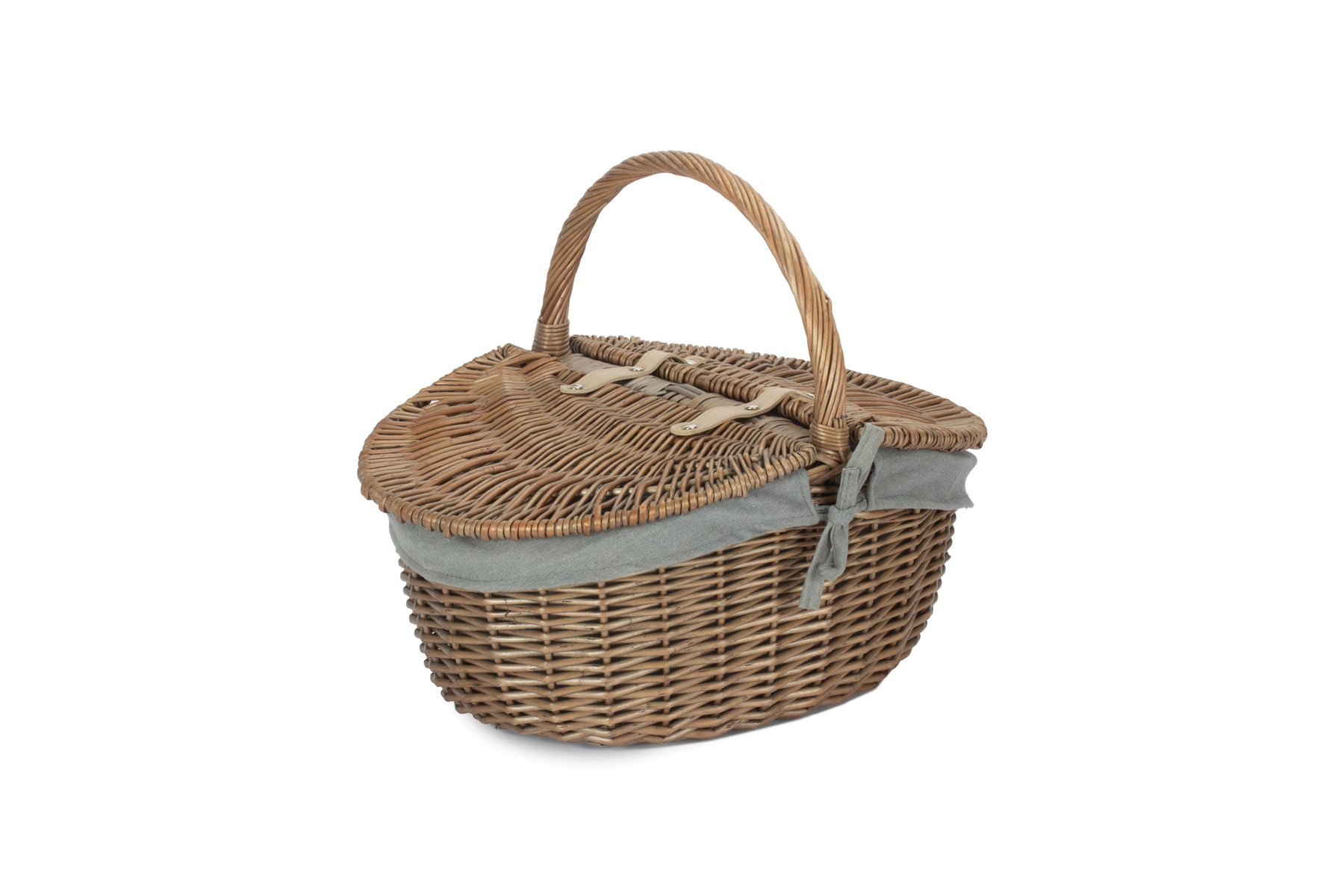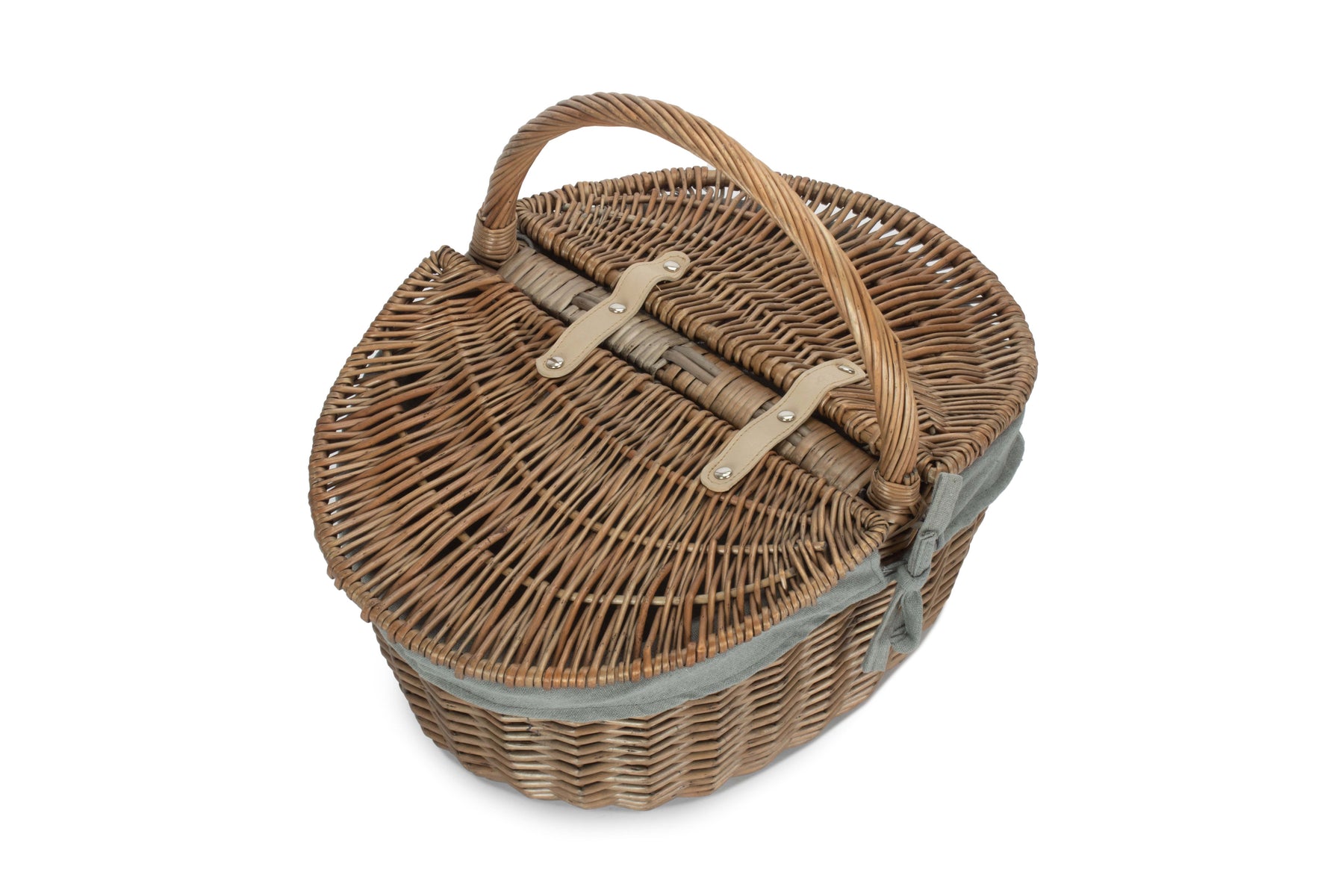 Our range of Antique Wash Finish Oval Picnic Baskets comes with a selection of removable cotton/polyester linings in a variety of rustic styles.
