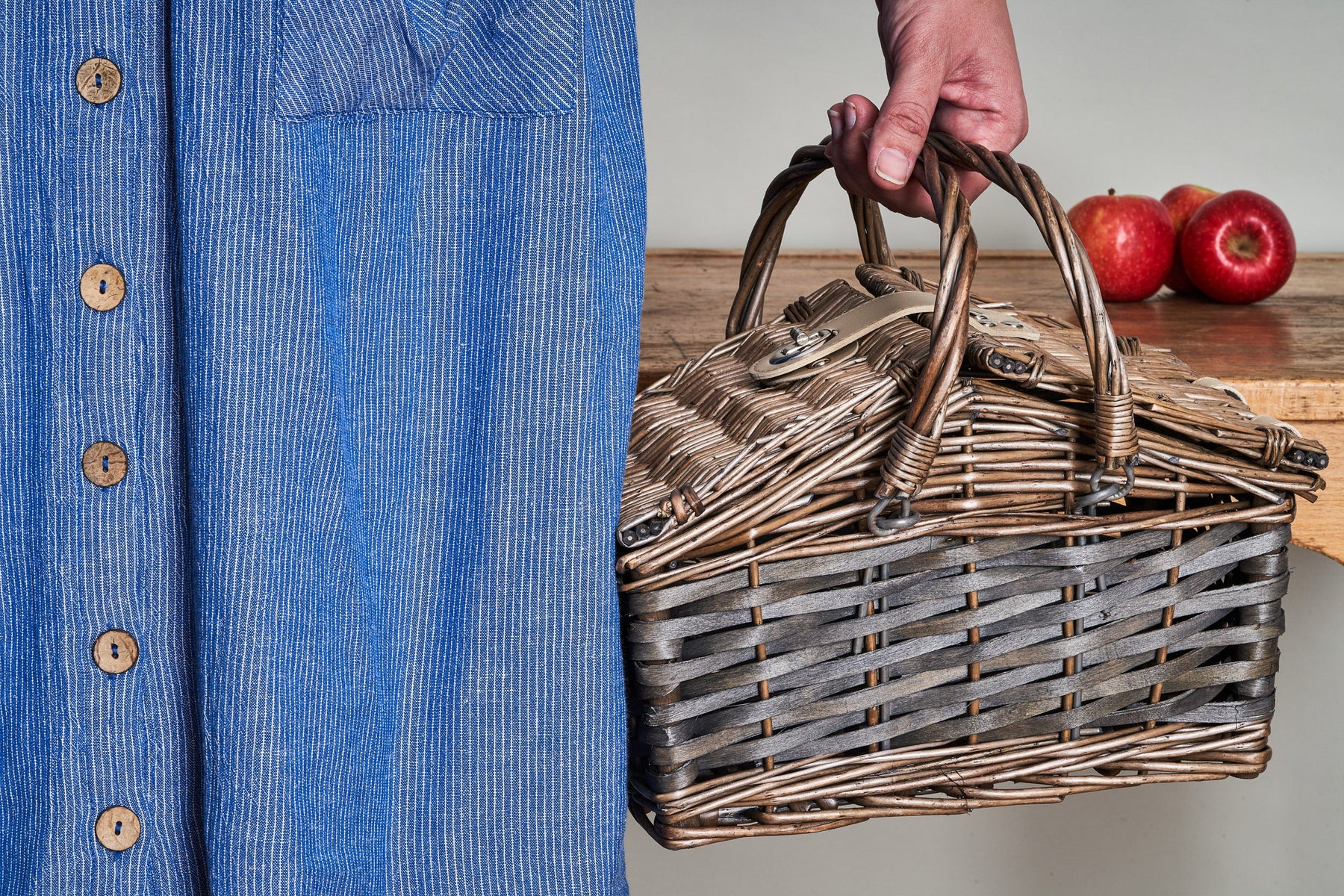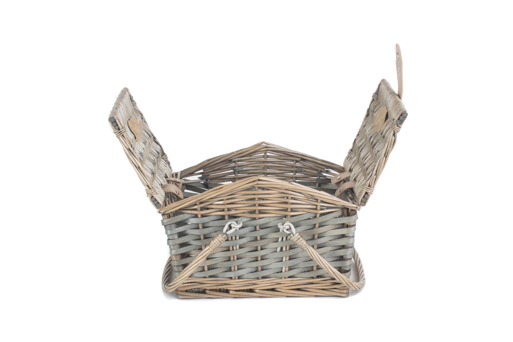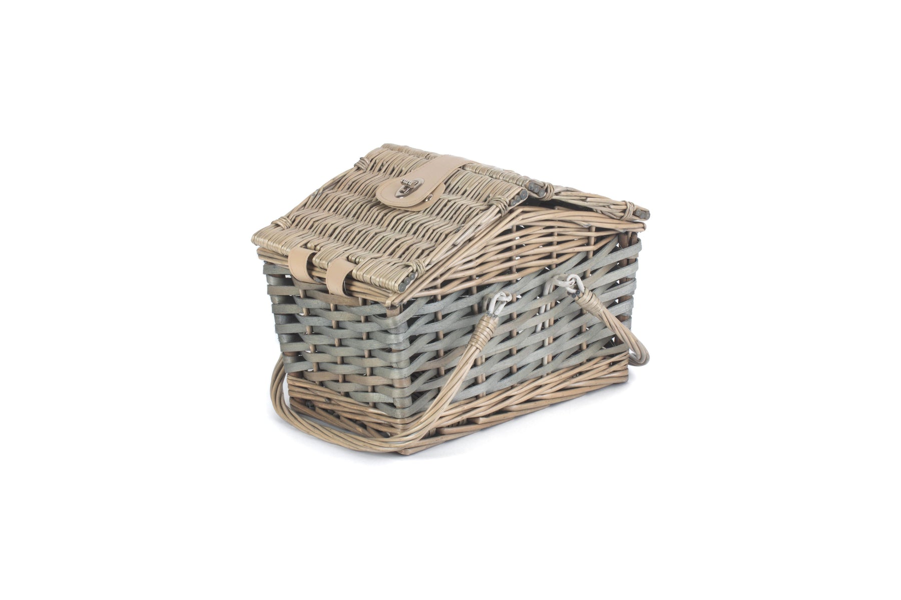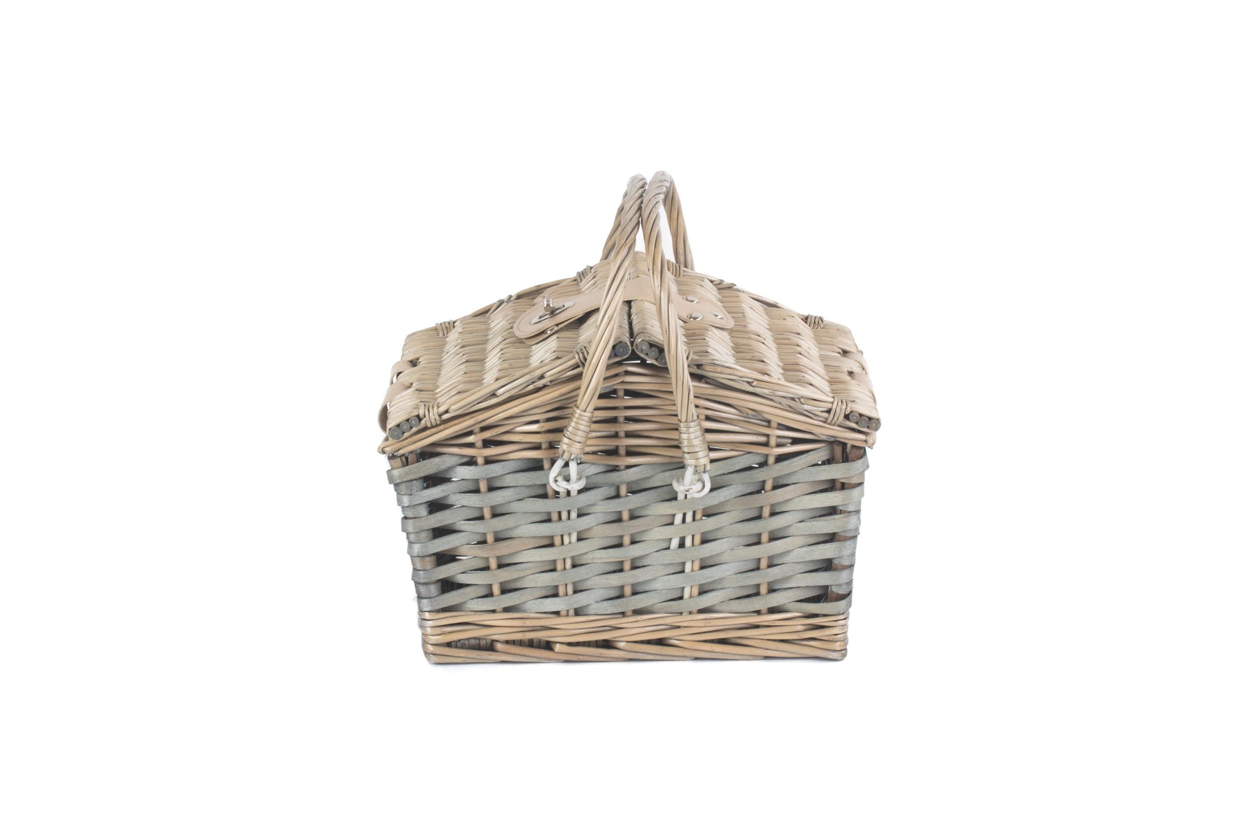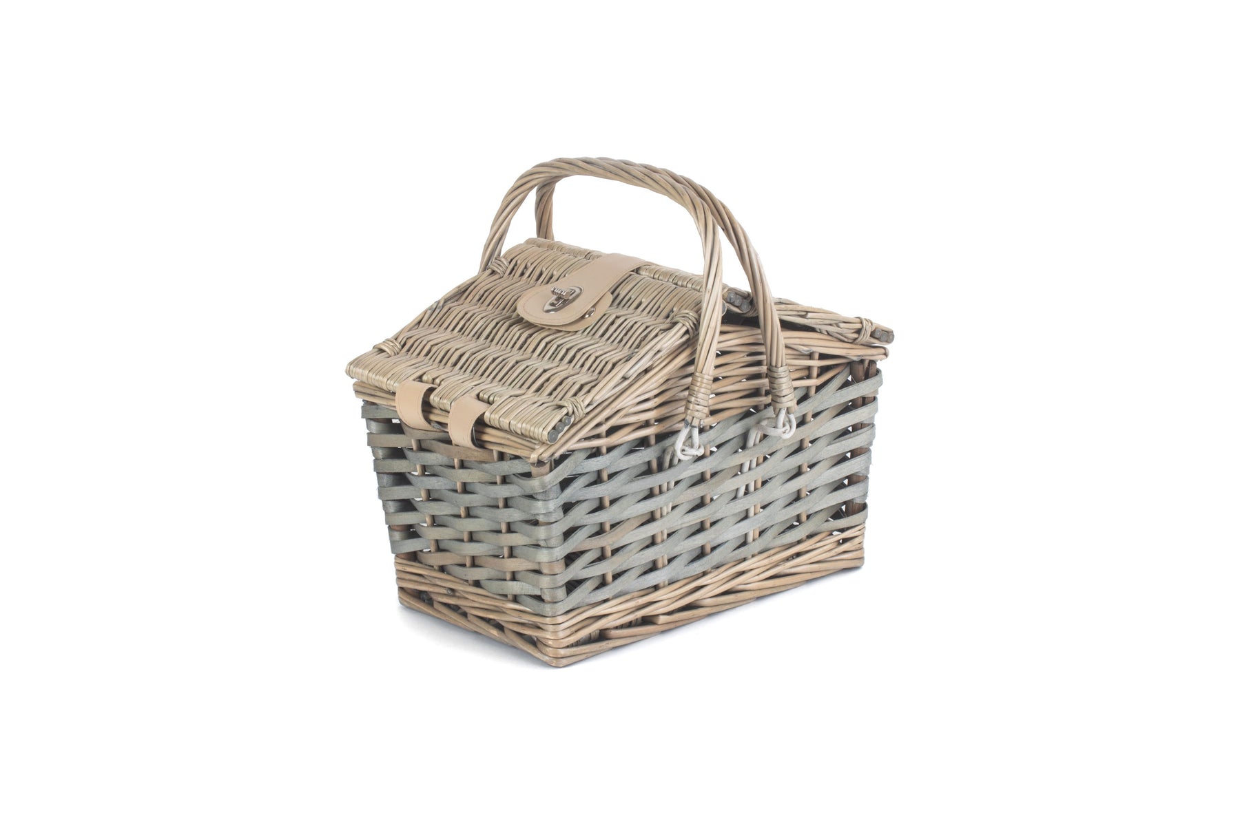 Impress your friends and family on your next outing with this fantastic swing handle wicker picnic basket in a classic vintage design. The hamper is made from full antique wash finish willow and poplar and has a studded faux leather closure to add extra elegance. The wicker swing handles make it straight forward to carry with you and the basket is big enough to store lunch for up to two people.
