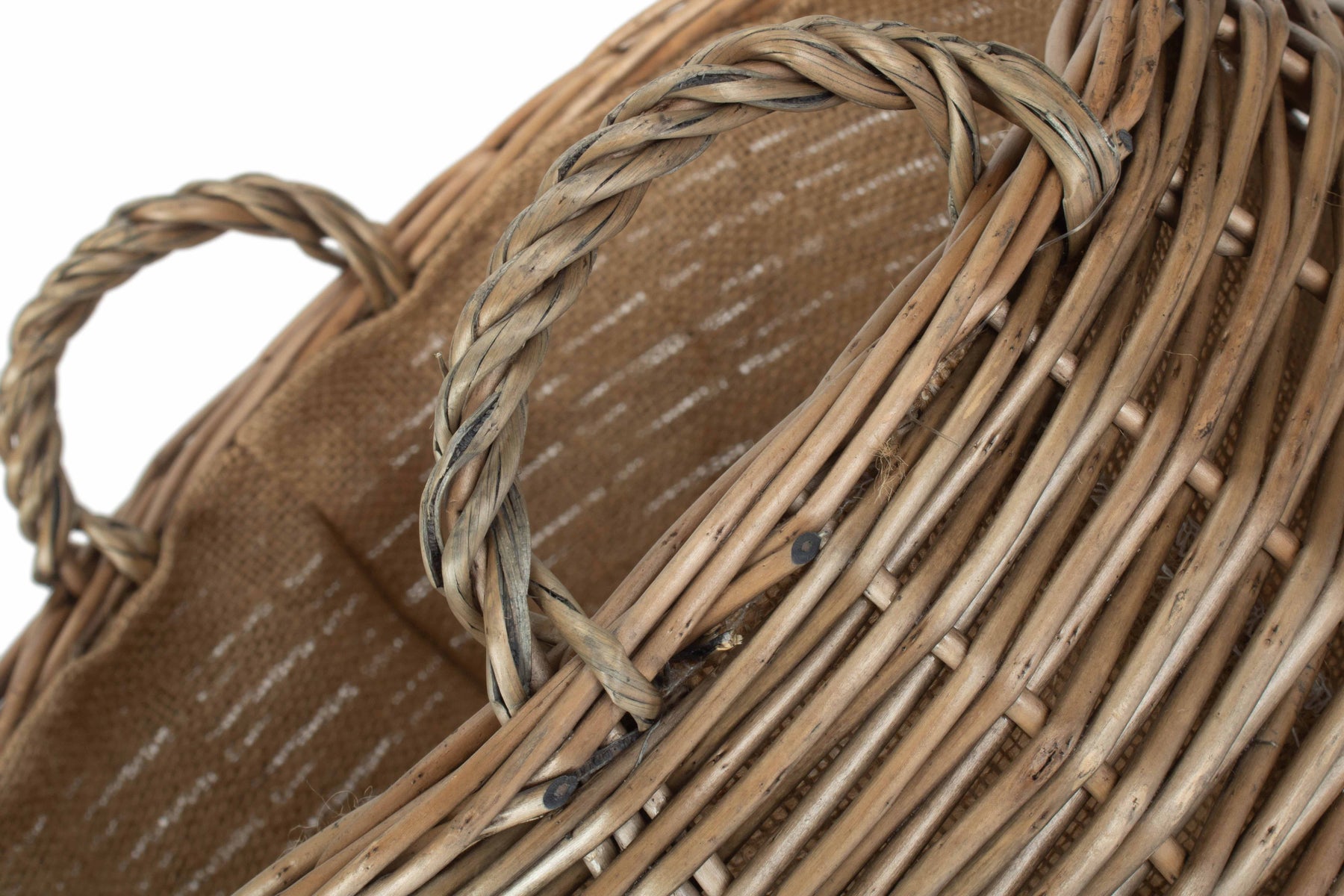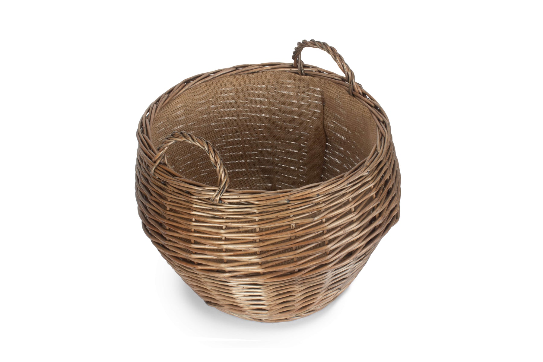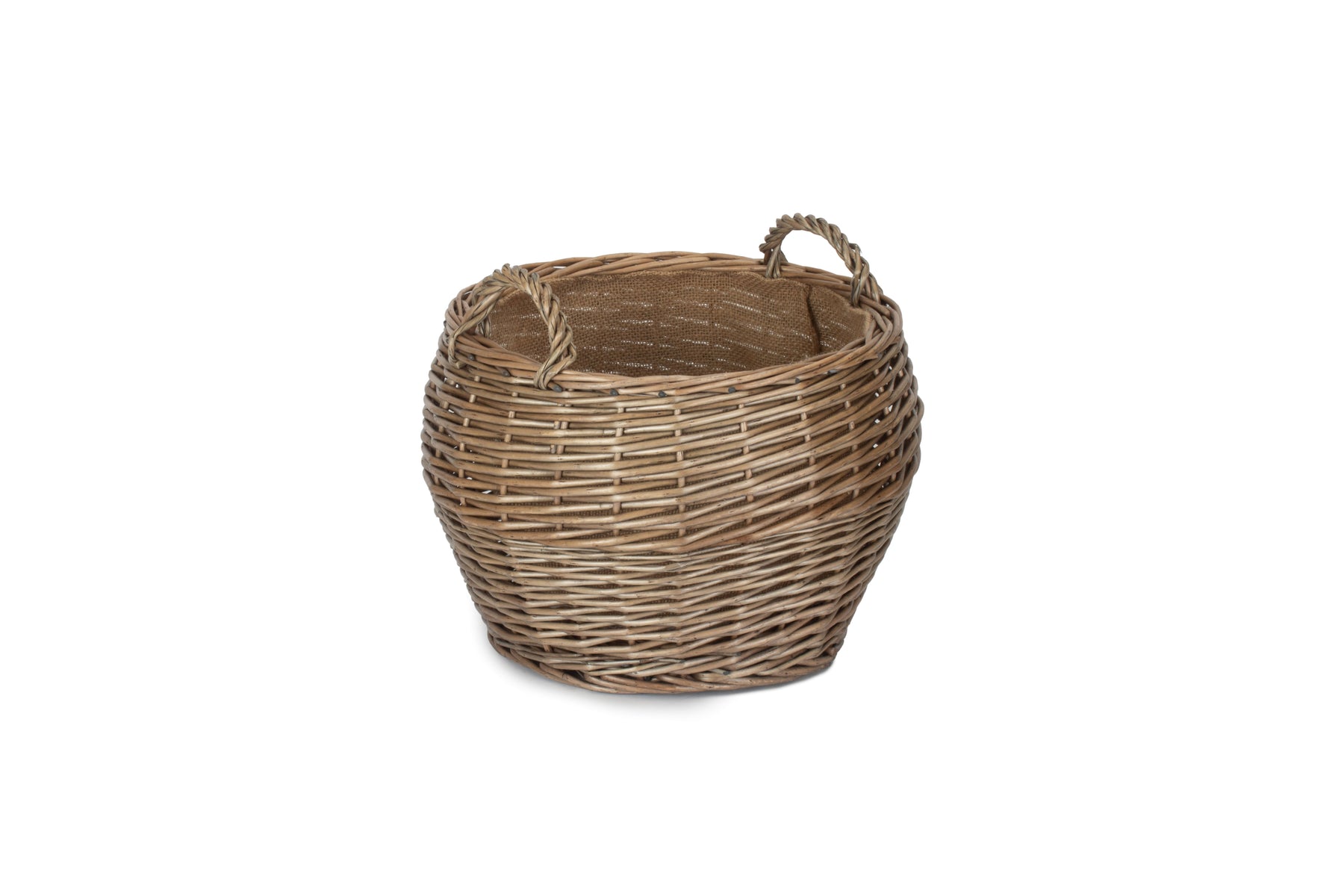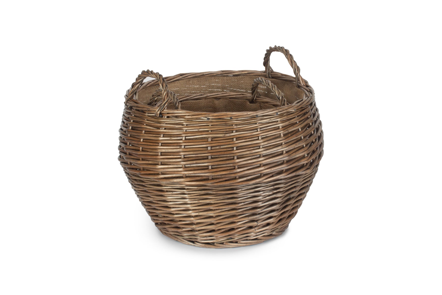 The hessian lining will protect the wicker, whilst sturdy fixed handles make for easy transport around the home. The classic rustic look of the antique washed willow is sure to fit into any home interior, taking pride of place.