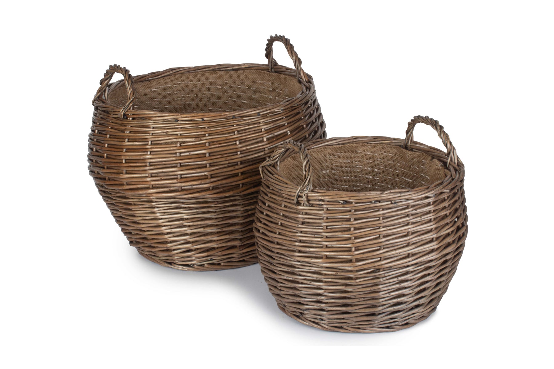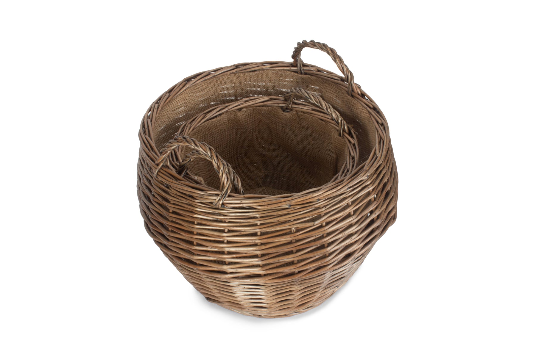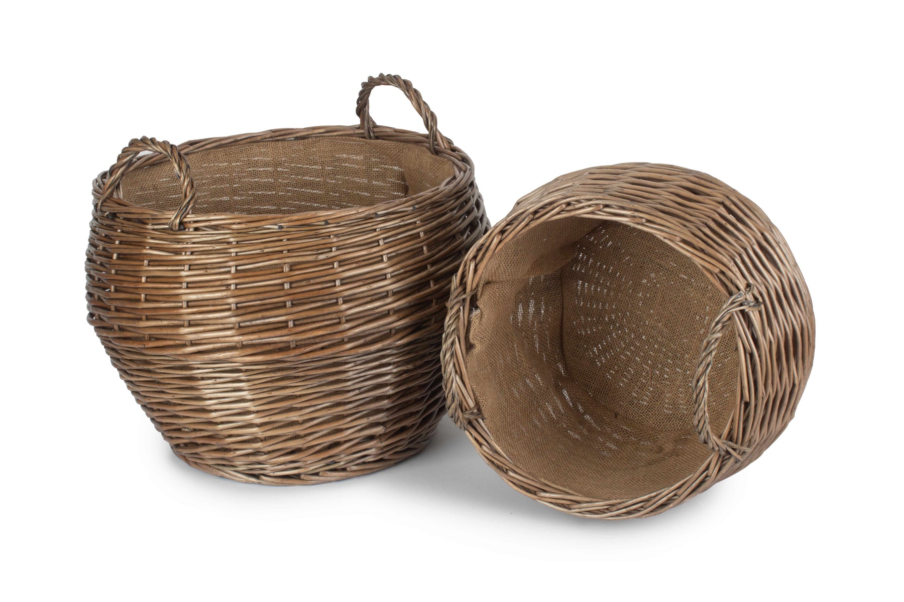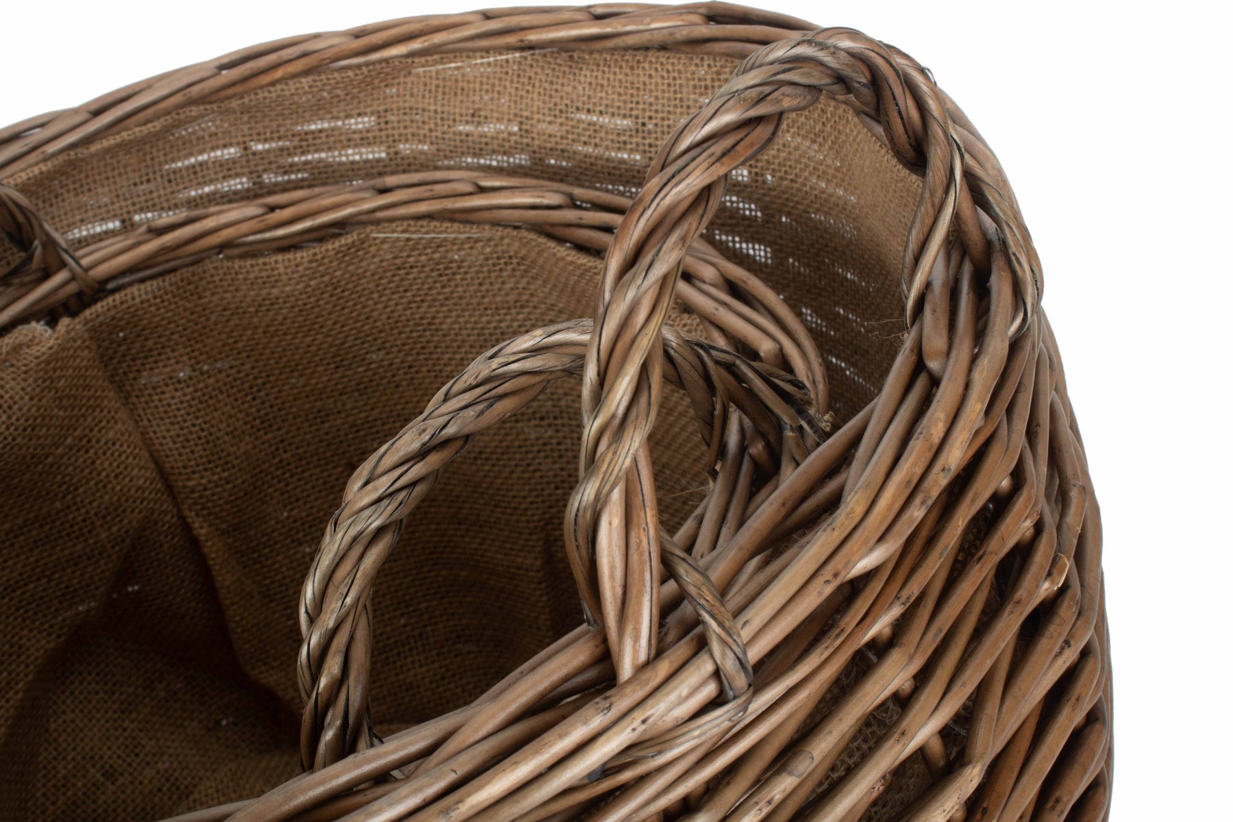 The hessian lining will protect the wicker, whilst sturdy fixed handles make for easy transport around the home. The classic rustic look of the antique washed willow is sure to fit into any home interior, taking pride of place.